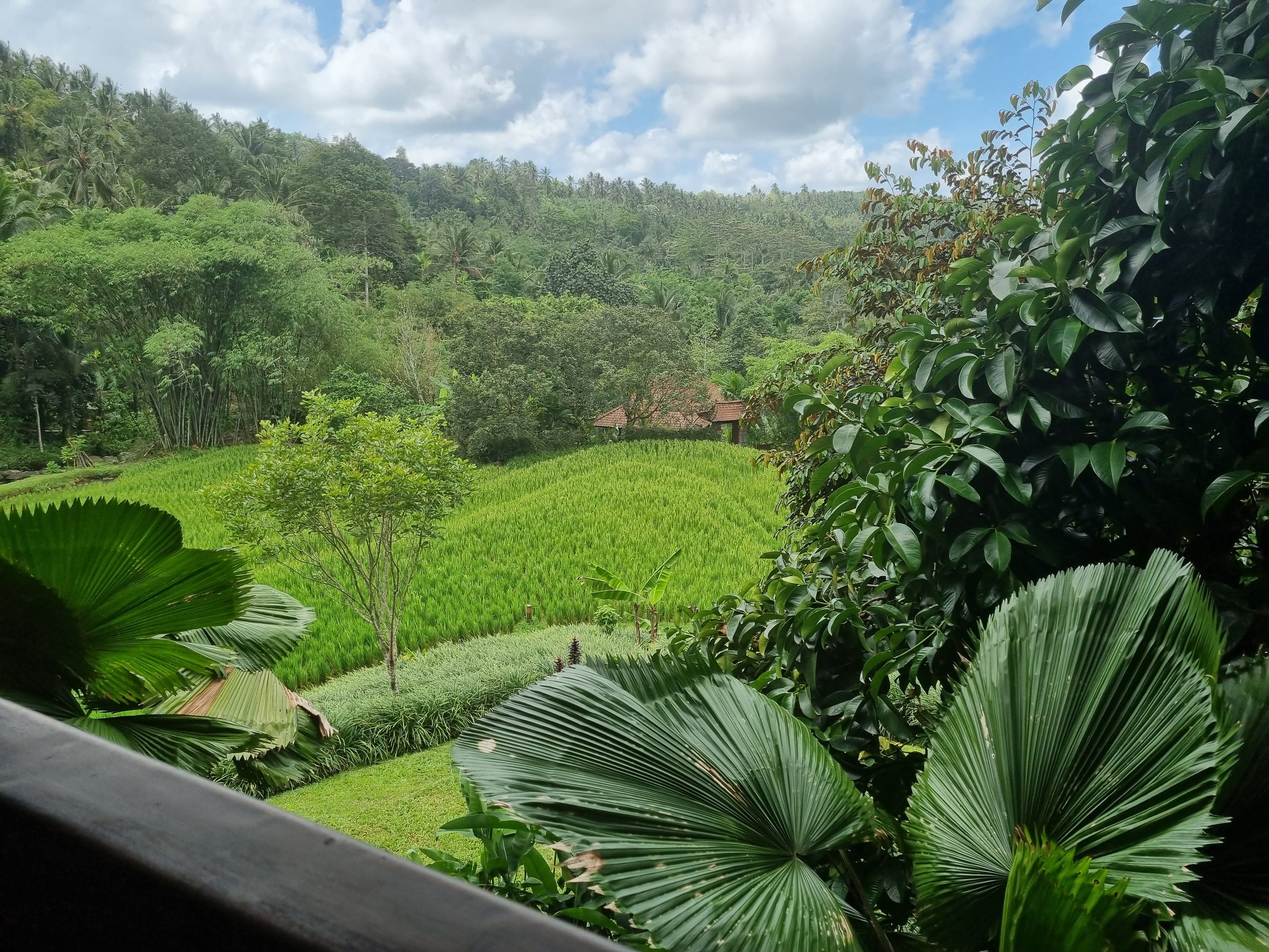 This spacious rice water bungalow is in the heart of Bali. With two separate bedrooms, a shared jungle bathroom decorated with wild orchids and a large common area, you can relax without compromising on privacy. From the comfort of the lounge area, relax on two large daybeds while enjoying sweeping views of rice paddies, jungle food forests and even the distant view of the sea, or soak up some sun in the enclosed private garden.