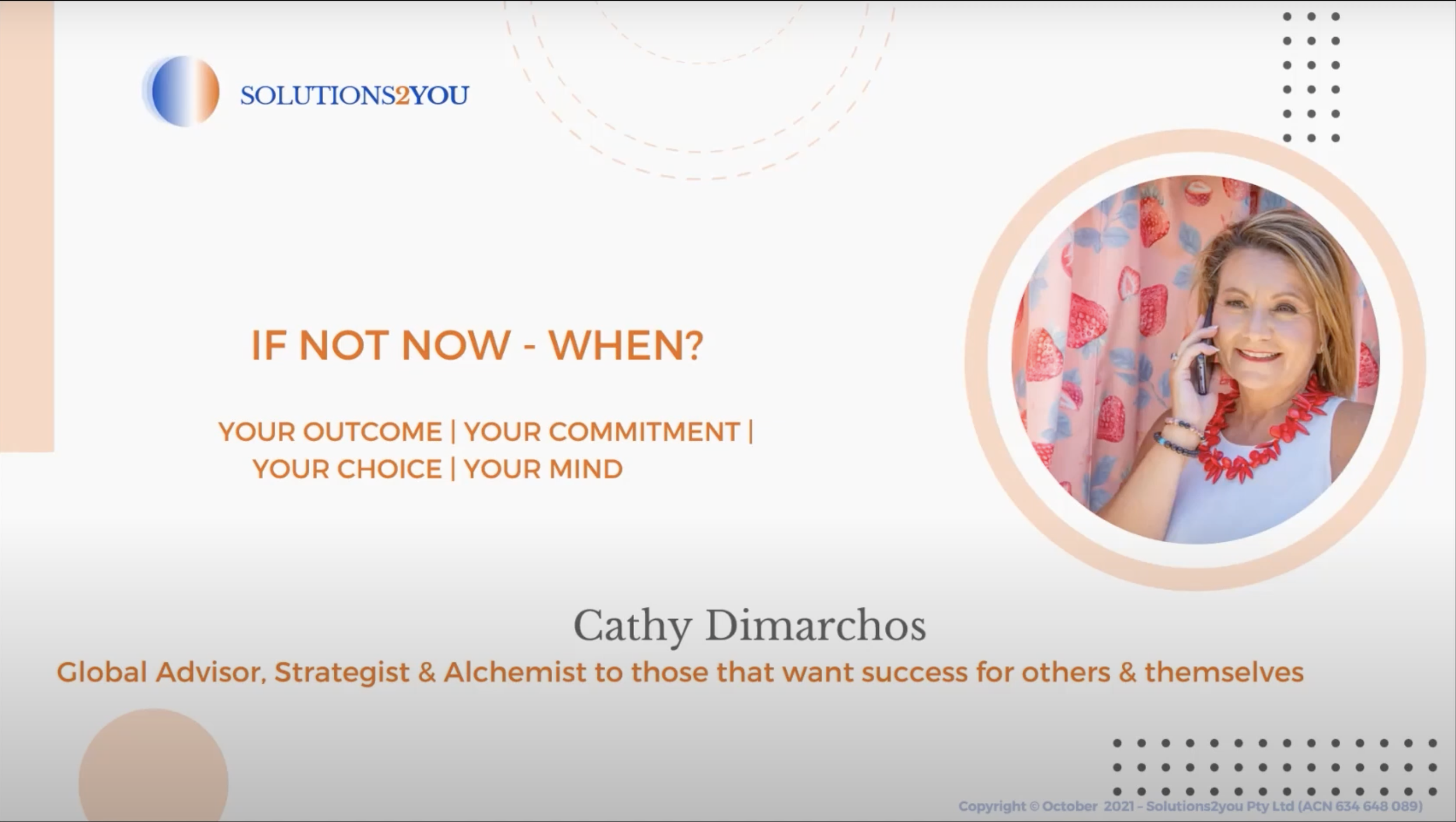 Cathy Dimarchos is a Global business advisor and an award-winning Mentor. She is an indefatigable philanthropist, TedX speaker and author who is future focused and works from her place of GENIUS to actualize goals and dreams for people in business and personally. She is known as the Alchemist in business. Her company, Solutions2you was born from her passion to serve and creating sustainable impact. She is highly sought after all over the world as a professional advisor and motivational voice with more than three decades of experience and dedicates her time to sharing knowledge that combines people, business and situational skills to deliver tangible tools and skills. Her values take centre stage and business becomes honest and expressive as she helps people be comfortable with being uncomfortable, unlearn patterns that don’t serve them and helps them step forward with clarity that will enable them to reach their goals.